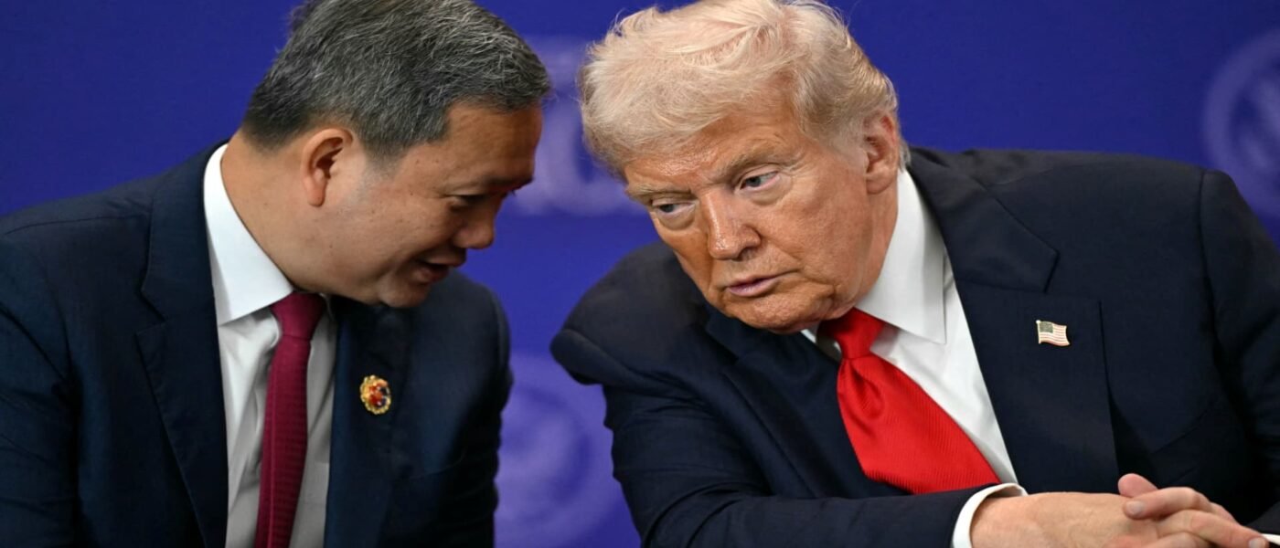 El presidente estadounidense Donald Trump escucha al primer ministro de Camboya, Hun Manet, antes de la ceremonia de firma de un acuerdo de alto el fuego entre Tailandia y Camboya al margen de la 47ª Cumbre de la Asociación de Naciones del Sudeste Asiático en Kuala Lumpur, Malasia, el 26 de octubre de 2025.