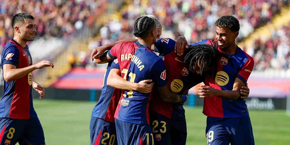 El Barcelona se mantiene líder en solitario de la tabla. 12 puntos de 12 posibles. Cuatro partidos ganados. Pero el de esta tarde en Montjuïc fue, sin duda, el más cómodo, brillante y completo de todos, con aportaciones brillantes individuales y colectivas. Fue un éxito coral en el que todos se lucieron a nivel particular, especialmente Raphinha, con un hat-trick.