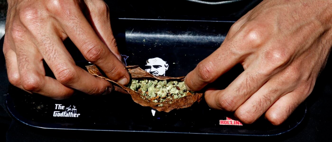 Un hombre prepara un cigarrillo de marihuana en Washington Square Park el 20 de abril de 2023 en la ciudad de Nueva York.