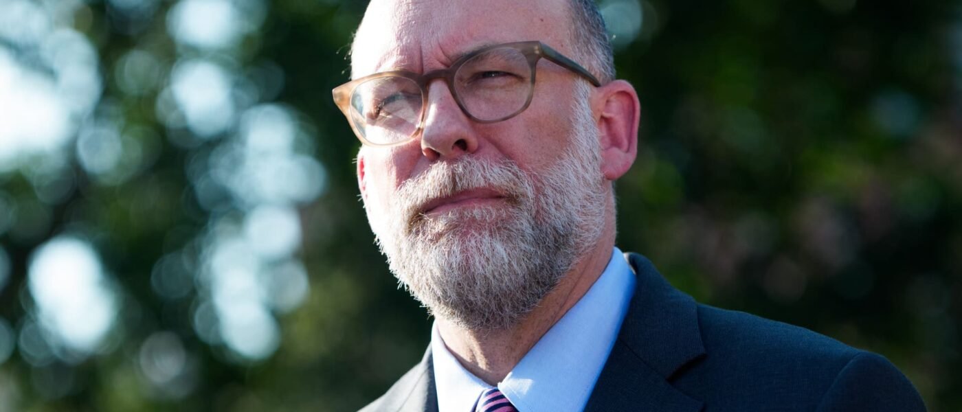 Russell Vought, director de la Oficina de Gestión y Presupuesto (OMB), habla con miembros de los medios de comunicación frente a la Casa Blanca en Washington, DC, EE. UU., el jueves 24 de julio de 2025.