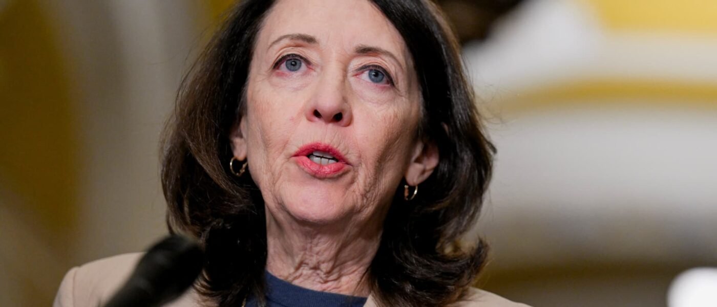La senadora estadounidense Maria Cantwell (D-WA) habla durante una conferencia de prensa después del almuerzo político semanal, en Capitol Hill en Washington, DC, EE. UU., el 3 de junio de 2025.