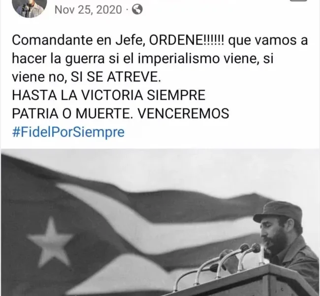 Según la reconstrucción realizada por el medio, el joven de 29 años ingresó a Estados Unidos en noviembre de 2022. Hasta pocas semanas antes de su llegada, aún difundía en redes mensajes de respaldo al régimen de Miguel Díaz-Canel y de hostilidad hacia Estados Unidos. Entre esas publicaciones aparece la consigna: “¡Comandante en jefe, ORDENE! Que vamos a hacer la guerra si el imperialismo viene, ¡SI SE ATREVE!”.
