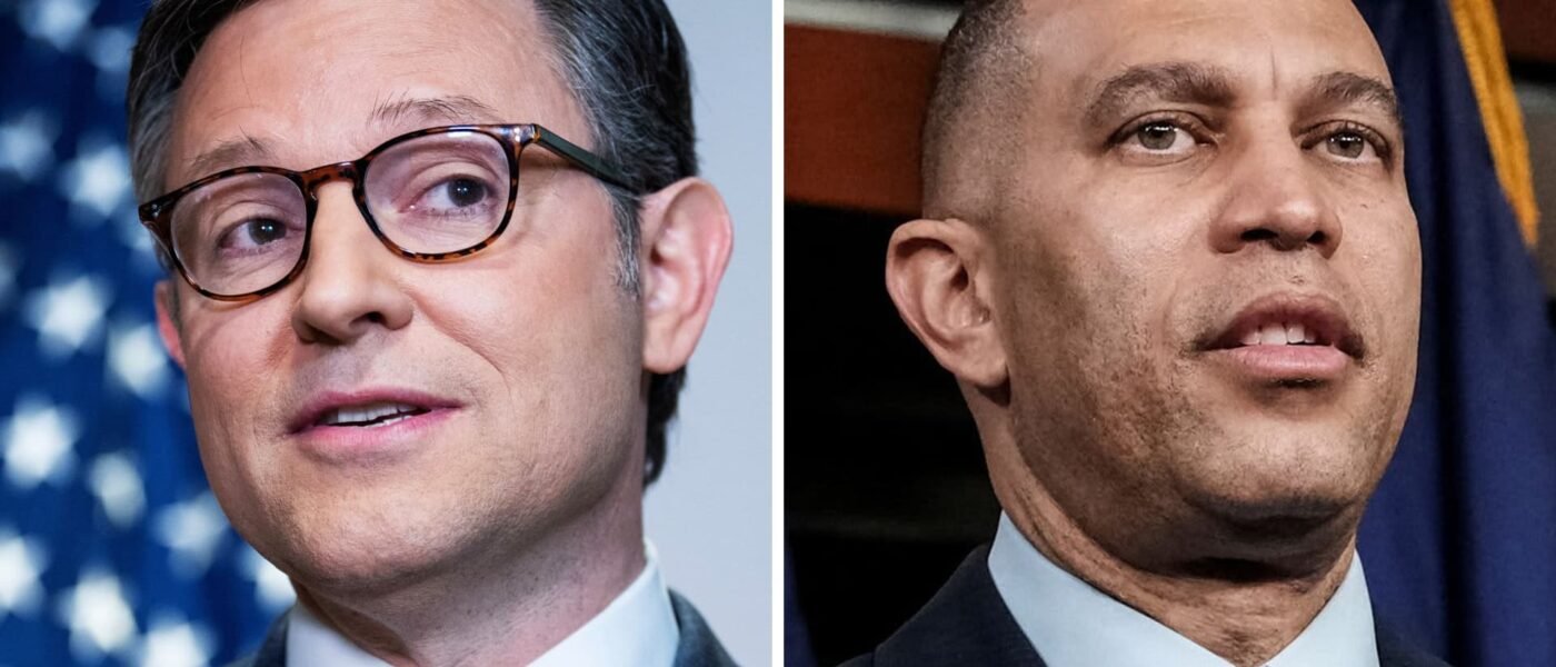 Presidente estadounidense de la Cámara de Mike Johnson (R-LA) y el líder demócrata de la Cámara de Representantes de los Estados Unidos, Hakeem Jeffries (D-NY).