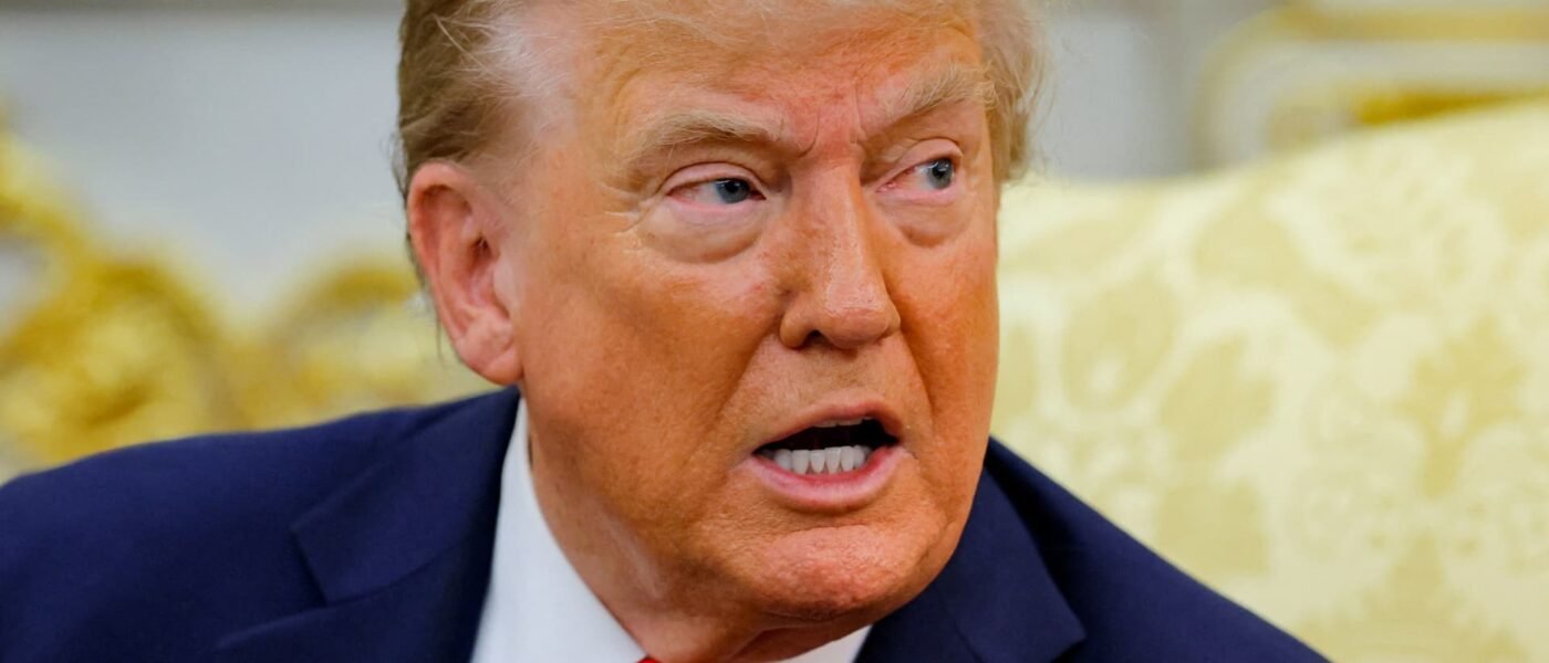 El presidente de los Estados Unidos, Donald Trump, reacciona cuando él y el presidente de Polonia Karol Nawrocki (no en la foto) se reúnen en la Oficina Oval de la Casa Blanca en Washington, DC, EE. UU., 3 de septiembre de 2025.
