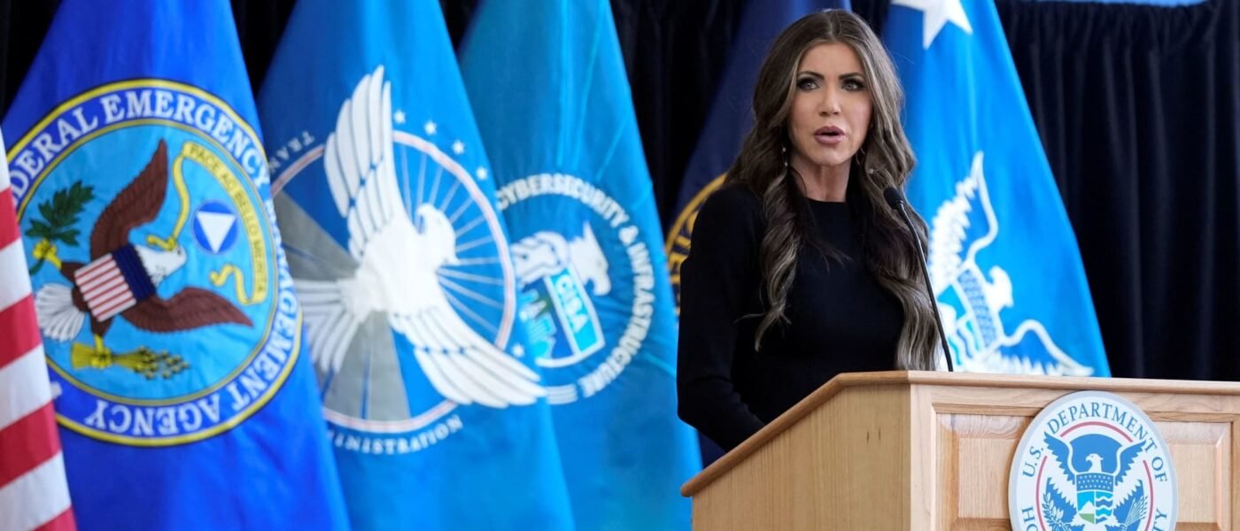 La secretaria de Seguridad Nacional, Kristi Noem, habla con los empleados del Departamento de Seguridad Nacional, martes 28 de enero de 2025, en Washington, EE. UU.