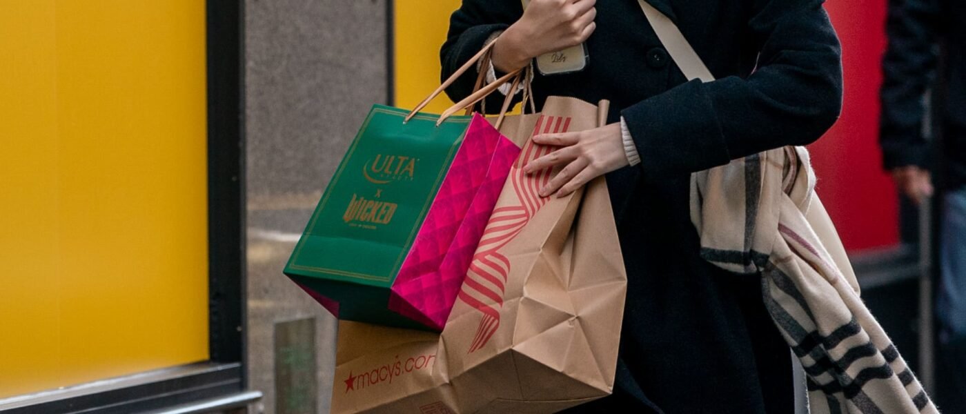 Una persona camina por una calle con bolsas de compras en la ciudad de Nueva York el 29 de noviembre de 2024.