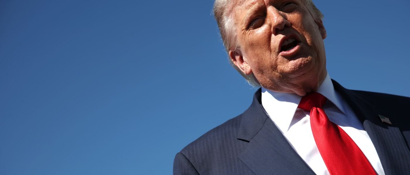 El presidente estadounidense Donald Trump habla con los periodistas cuando llega al Aeropuerto Internacional de Palm Beach el 31 de octubre de 2025 en West Palm Beach, Florida.