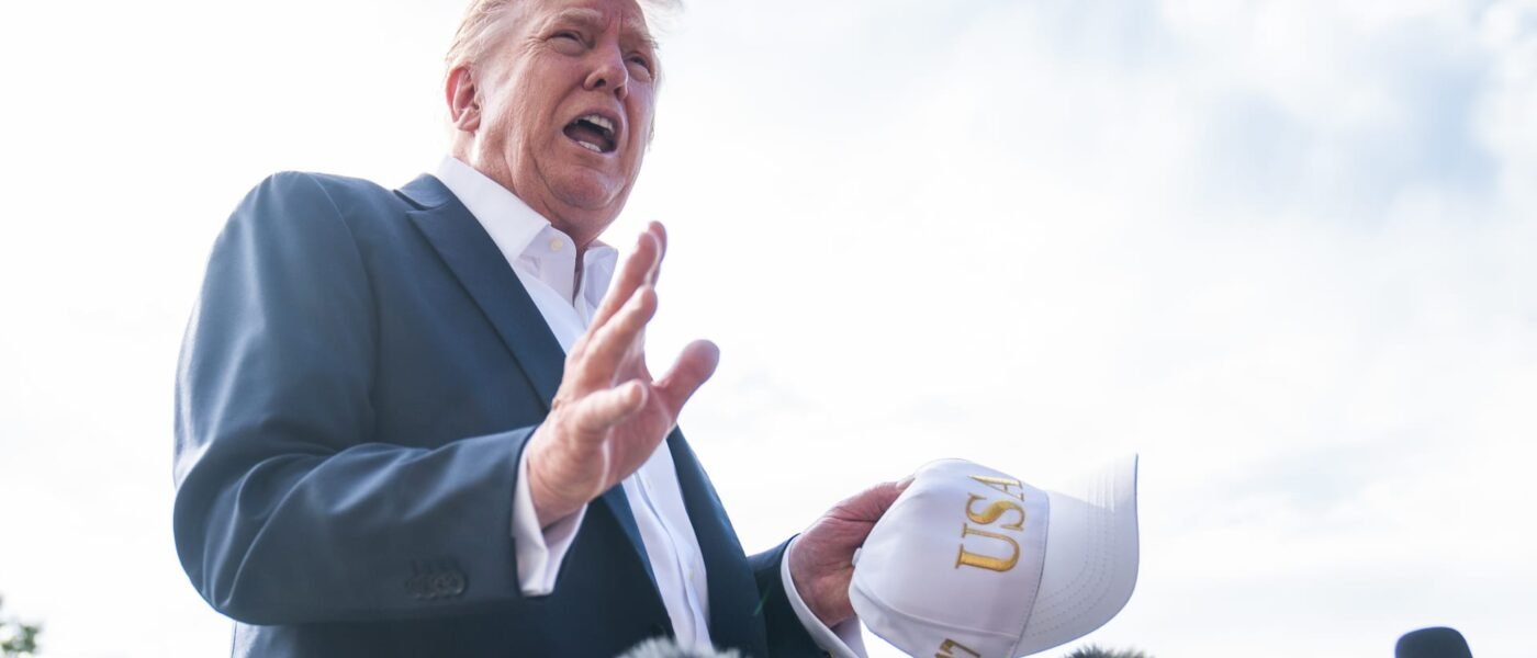 El presidente de los Estados Unidos, Donald Trump, habla con la prensa sobre el césped sur de la Casa Blanca el viernes 26 de septiembre de 2025.